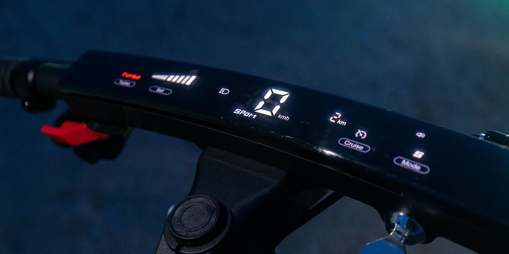 Dzięki temu nowoczesnemu i czułemu ekranowi LED możesz intuicyjnie uzyskiwać w czasie rzeczywistym informacje o stanie pojazdu, w tym między innymi prędkość jazdy, pozostały poziom naładowania akumulatora, przebieg, aktualny bieg itp. Dzięki czemu wszystkie kluczowe dane będą widoczne. Ponadto obsługa dotykowa jest prosta i intuicyjna. W dodatku panoramiczny wyświetlacz jest wyposażony w głośnik bluetooth! Dzięki niemu podczas jazdy lub postoju jesteś w stanie słuchać swojej ulubionej muzyki!